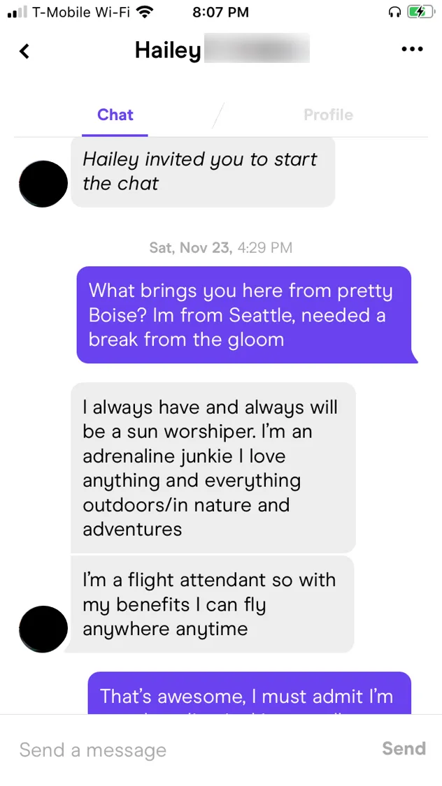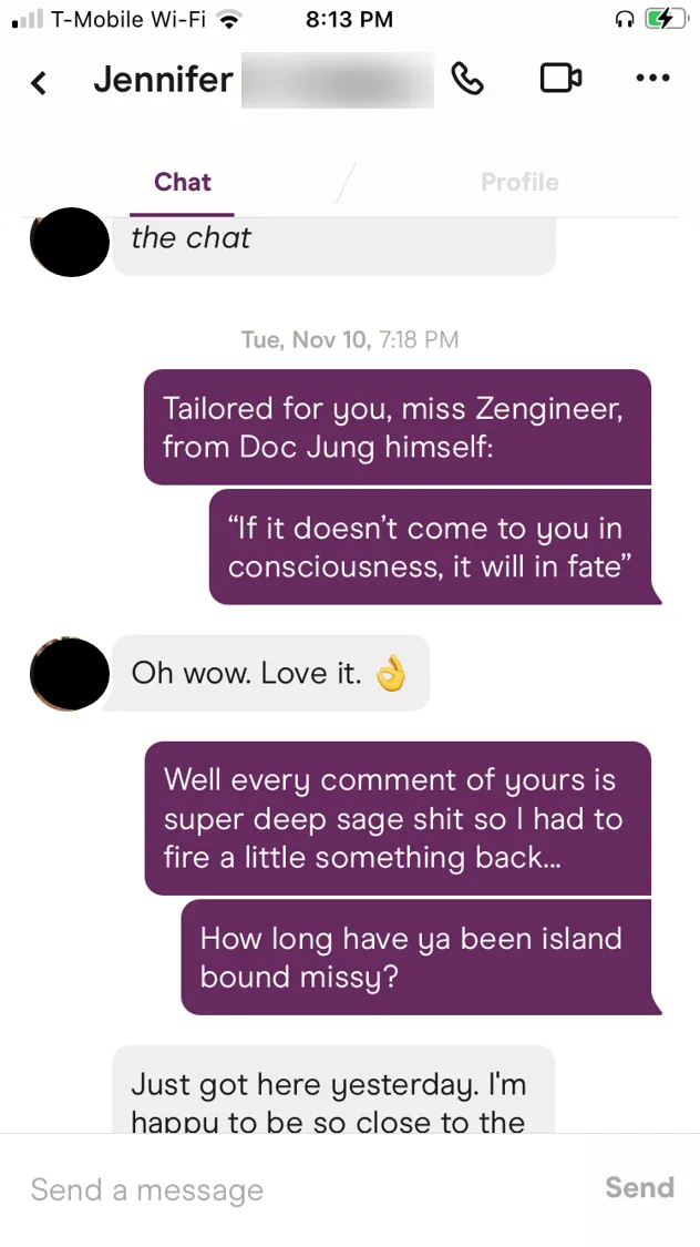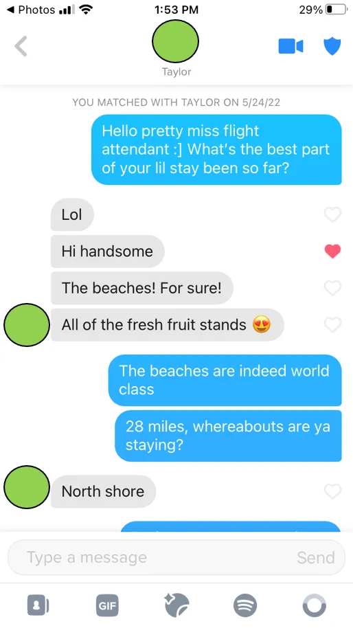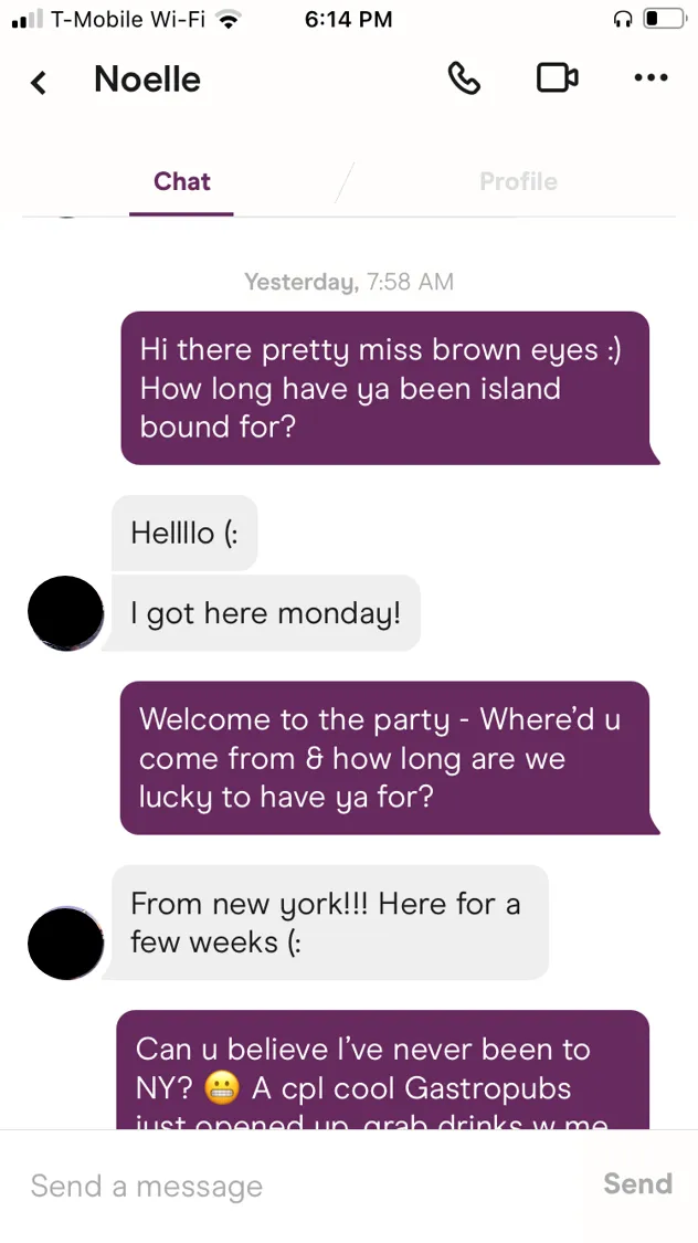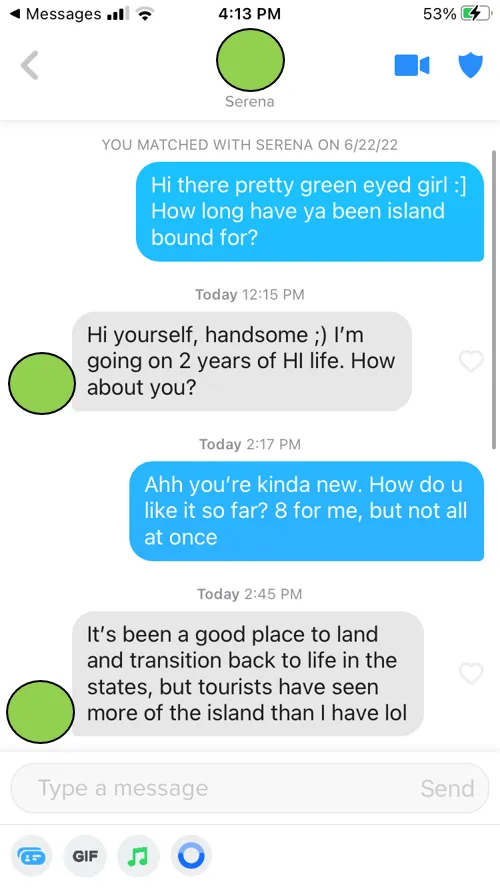 All the screenshots here are 100% real and from me and ONLY me. I think it is super important to understand that everyone has their own style - this is one version of my own style. Since we are all so unique, the things we say depend on a variety of factors. You're going to have to try things and figure out what works for you. I consider myself in good shape with pretty decent looks, trying to be as objective as possible, I probably don't need to say anything TOO crazy to get a conversation going with a girl as long as what I do say isn't dull and boring. It may be different for you, however, you'll have to experiment. In general, though, avoid the "Hey" / "What's up?" inane boy-game.